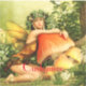Fada loira de olhos azuis abraçando um grande cogumelo amanita para personalizar com sua própria saudação, nome, mensagem, etc