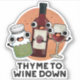 "Thyme To Wine Down Engraçado Pun..." mostra uma garrafa fofa de tomilho com sua ampola de vinho e garrafa. Presente perfeito para a família e amigos que adoram trocadilhos de comida fofo.