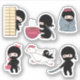 Um conjunto de adesivos engraçados e fofos de desenho animado ninja.