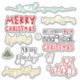 Um conjunto de autocolantes festivos individuais numa folha útil com várias mensagens de cartões de natal numa gama de estilos e cores tipográficos. Feliz Natal, Esta É A Época, Longe Em Um Armário, Alegria Ao Mundo, Desejando-Lhe Um Natal Mágico e Felizes Feriados, juntamente com bônus de uma árvore de Natal, Neve e Estrela.