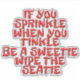 Acontece. Alguém não consegue levantar o assento do banheiro e não tem o melhor objetivo - deixando uma surpresa desagradável para a próxima pessoa que se senta nele. Por isso, fiz este pequeno lembrete engraçado - SE VOCÊ SPRINKLE QUANDO VOCÊ TINKLE SER UM DOCINHO LIMPAR A SEATIE. A letra do tipo "Cartoonish" é preenchida com vermelho e tem um sombreamento vermelho ligeiramente mais escuro na parte externa das letras. Disponível em folhas de 3 x 3 a 14 x 14 polegadas com fundo branco ou transparente. Isto pode ser fofo no tanque ou na tampa.