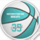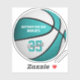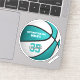 Este adesivo de basquete personalizado apresenta a imagem realista de uma bola de basquete que tem turquesa alternada e painéis coloridos brancos nos quais você pode personalizar o nome do atleta e o número de camisa mais o nome da escola ou do clube e o nome do mascote - por katz_d_zynes