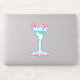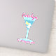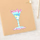 Este adesivo de corte de contorno divertido pode ser personalizado com seu nome em rosa, acima do desenho de um coquetel azul de gin e tônico com gelo e limão, e as palavras "Trabalhando para gin".