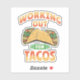 Ilustração engraçada colorida com o design de texto "Trabalhando para os Tacos" com decoração de Tacos para todos que amam comida mexicana