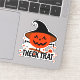 Celebrar o Halloween de uma forma assustadora com esta trabalho de arte da Pumpkin Treck Trat com uma abóbora super fofa com um machado adagger e um fantasma. Trabalho de arte veste um chapéu, acrescentando um olhar de mistério à figura fantasma.