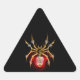 Aranha mecânica, com pá-pá de ouro, engrenagens de latão e uma lâmpada de vidro vermelha sobre fundo preto. Estilo Steampunk.
