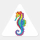 Articulação artificial, brilhante, arco-íris, cavalo de mar poligonal sobre fundo branco. Tatuagem brilhante.