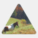 Adesivo Triangular Cavalo branco e castanho, lagoa de outono