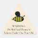 Ícone de abelha em branco e preto com a criança de mel "Aviso: Não alimente mel a Crianças com menos de um ano" sobre um fundo branco e dourado antigo. Adicione autocolantes à tampa superior ou lateral dos frascos de mel, garrafas plásticas de aperto e outros recipientes. Coordene com nossa etiqueta de Fatos Nutricionais de Mel com uma variedade de cores correspondentes para escolher em diferentes "Temas de Design". © dotpadrn