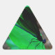 Adesivo Triangular Damselfly azul em uma folha verde.