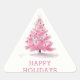 Felizes Festas Árvore de Natal Rosa Moderno Adesivo Triangular