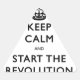 Hora de uma revolução, não diria? Um slogan divertido e oportuno "Fique Calmo e" que diz tudo.