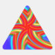 Um padrão geométrico ou design atraente predominantemente em tons de vermelho e azul, mas também com amarelo, ciano, roxo e verde.