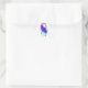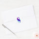 Símbolo infinito com uma bela pena pintada em cores roxas e azuis brilhantes sobre fundo branco.