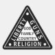 O adesivo de triângulo que você pode colocar na engrenagem para que as pessoas saibam suas prioridades. Deus, Família, País. Liberdade, Armas, Religião.