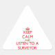 Adesivo Triangular Mantenha-se calmo e ouça uma pesquisa