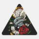 Arte vetorial original de uma mão segurando cartas de jogar que estão em chamas. Com moedas de ouro, dados, 8 Bola, Fita e rosa.