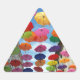 Um telhado de guarda-chuvas coloridos sob o céu limpo