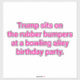 Trump sits on the rubber bumpers at a bowling alley birthday party. Comic-Social-Commentary Splash-Art Vinyl sticker-design by Jeff Hankamer at Artjunkhaus