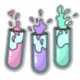 Três tubos de ensaio turbulentos, contendo líquidos de cor fofa! Perfeito para aqueles que trabalham no laboratório e precisam de alguns doces da vida do laboratório para iluminar seu dia de ciência!