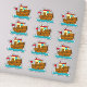 Um barco de tug marrom com uma cabana de cor creme e uma pequena bandeira vermelha atrás. Está navegando nas ondas azuis num dia nublado, mas ensolarado.