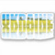 Texto da Ucrânia composto por campo amarelo com céu azul com reflexo de texto em água