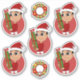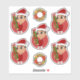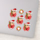 Conjunto de sete adesivos de vinilo cortados, com a ilustração de um bonitinho rapaz hispânico/latino ou bebê asiático feliz, ele está vestindo um chapéu vermelho e branco de Papai Noel e segurando um presente de Natal