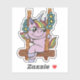 Adesivo unicórnio em um baloiço, unicórnio fofo, unicórnio
