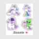 Embarque em uma jornada cósmica com meu adesivo 'Unicórnios Galácticos'! Estes autocolantes encantadores apresentam unicórnios mágicos com caudas vibrantes do arco-íris, uma alienígena amigável, e um unicórnio cavalgando um astronauta. Perfeito por adicionar um toque de capricho e cor a qualquer item, esses adesivos são ideais para aqueles que amam fantasias e aventuras espaciais.