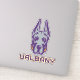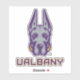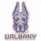 O logotipo do mascote da Universidade de Albany Great Dane apresenta uma representação estilizada da cabeça de Great Dane. O cão é ilustrado com linhas vivas e corajosas em roxo e cinzas, dando-lhe uma expressão feroz e confiante. Os ouvidos são altos, simbolizando o alerta e a força. Por baixo da cabeça de Great Dane está a palavra "UAlbany" escrita em letras ouros arrojadas e achatadas em roxo, reforçando a marca da universidade. Esta design representa as equipes esportivas da UAlbany, destacando poder, lealdade e determinação.