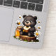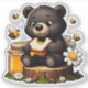 Ursos como o mel... mas as abelhas não gostam de ursos. Este adorável urso preto está sentado num toco comendo um sanduíche de mel sem fazeres pelas abelhas zangadas a zunir-se à sua volta porque ele roubou o seu mel.