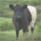 Uma Vaca Galloway Belted, também conhecida como Bela de Oreo ou Vaca Panda, olha hetero para a câmera. Grazing aqui no Parque Nacional Dartmoor.
