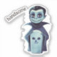 Este é um adesivo fofo e personalizável do Halloween que apresenta um vampiro bonito e aristocrata ao lado de uma lápide. Você pode personalizar o texto padrão "bonito".