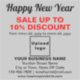 Feliz ano novo! Um novo começo. Um novo começo. Feriado para comemorar este janeiro e anunciar também seu negócio. vinheta de vinilo quadrado personalizável com venda de ano novo, seu nome comercial e outras informações. vinil adesivo que você pode usar como material de marketing para atrair mais clientes. Personalize-o e exiba-o para convencer mais clientes a comprar de seus produtos ou clientes a gostar de seus serviços. As cores design são textos pretos e vermelhos em fundo de cinza. O conteúdo é saudação de Feliz ano novo, textos de venda com desconto percentual que você oferecerá, datas de venda, seu nome comercial, logotipo, endereço, número de telefone, e-mail e site ou sua página de mídia social de negócios. Verifique a aparência após carregar o logotipo e digitar textos. Se a aparência lhe agrada, você pode colocar seu pedido agora. Se precisar redimensionar e mover o logotipo e as mensagens para o ajustado neste adesivo ou no tamanho que você escolher, mude na ferramenta design. Você também pode alterar a cor do plano de fundo, a cor da fonte e o estilo da fonte na ferramenta design. Feliz ano novo! Desejando mais vendas neste feriado e nos próximos anos.