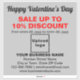 Feliz dia do Namorados! Um feriado adorável para comemorar este fevereiro e anunciar também seu negócio ou promover seu nome de marca. vinheta de vinilo quadrado personalizável com venda de Namorados, seu nome comercial e outras informações. vinil adesivo que você pode usar como material de marketing para atrair mais clientes. Personalize-o e exiba-o para convencer mais clientes a comprar de seus produtos ou clientes a gostar de seus serviços. As cores design são textos pretos e vermelhos em fundo de cinza. O conteúdo é a saudação do Dia de Namorados Feliz, textos de venda com desconto percentual que você oferecerá, datas de venda, seu nome comercial, logotipo, endereço, número de telefone, e-mail e site ou sua página de mídia social de negócios. Verifique a aparência após carregar o logotipo e digitar textos. Se a aparência lhe agrada, você pode colocar seu pedido agora. Se precisar redimensionar e mover o logotipo e as mensagens para o ajustado neste adesivo ou no tamanho que você escolher, mude na ferramenta design. Você também pode alterar a cor do plano de fundo, a cor da fonte e o estilo da fonte na ferramenta design. Feliz dia do Namorados! Desejando mais vendas neste feriado.