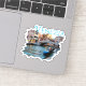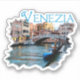 Uma imagem de suvenir de uma ponte, barcos e edifícios coloridos em torno de um canal em Veneza, Itália. Este adesivo é totalmente personalizável.