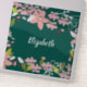 Um fundo verde escuro dispara as flores rosa ilustradas e marrom com folhas brancas e verdes. Um presente perfeito para uma senhora especial de qualquer idade!