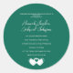 Personalize estes adesivos redondos clássicos com o nome, data ou mensagem desejada. Ótimo para casamentos e outras ocasiões. A cor mostrada é verde esmeralda. Use o modelo para criar seus próprios adesivos de casamento.