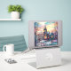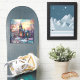 Um encantador vinilista de corte personalizado com a imagem de uma igreja de inverno em estilos de vidro manchado.