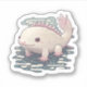 Este adesivo apresenta uma engraçada axolotl estilo cartoon sorrindo e balançando. O axolotl é um tipo de salamandra conhecida pela sua aparência adorável e capacidade única de regenerar partes do corpo perdidas. Este adesivo é perfeito para qualquer um que ama axolólitos, natureza, ou animais fofos e esquisitos. Coloque-o no seu laptop, garrafa d'água, ou notebook para mostrar seu amor por esta criatura incrível.