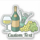 Composição de vinho branco. Garrafa, vidro, saca-rolhas e uvas. Custom Text.