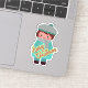 Um garoto bonitinho está te desejando um Feliz Natal em um adesivo.
