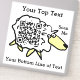 Código QR da sua empresa com uma ilustração divertida de cartoons em um adesivo. Substitua o código QR mostrado pelo seu. Tamanho 8" x 8".