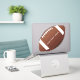 O Design de futebol contorna o adesivo em vários tamanhos, com texto personalizável.