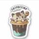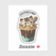 O CATPUCCINO Cat Sticker é um design lúdico e fofo que inclui um gato cartoon caprichoso que gosta de um delicioso cappuccino. O design é colorido e atraente para os olhos, com o gato representado numa posição sentada, segurando uma xícara de cappuccino numa pata e uma colher na outra. O pelo do gato é representado em uma textura macia e lisa, com tons de marrom claro e creme. O rosto do gato é amigável e expressivo, com grandes olhos redondos, um nariz rosa pequeno e um sorriso largo. As orelhas do gato estão tocadas, sugerindo um senso de felicidade e contentamento. O cappuccino é representado em uma textura espumosa e cremosa, com uma espuma em forma de coração no topo. A xícara é branca, com um disco azul e uma palha listrada vermelha e branca. O fundo do adesivo é uma cor bege leve, dando a impressão de um compro de café quente e aconchegante. Em termos gerais, o CATPUCCINO Cat Sticker é um design divertido e leve que é perfeito para amantes de gatos e café. É certo que traz um sorriso à face de alguém e faz com que se sintam quentes e felpudo.