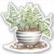 Este adesivo apresenta uma bela ilustração aquosa de uma planta de havalia-zebra numa cinza e pote cerâmico listrado branco com detalhamento intrincado das folhas do tipo zebra da planta. Este adesivo traz um toque de verde e elegância para qualquer superfície em que você o usa. É perfeito para amantes de plantas, entusiastas da natureza, e qualquer um que queira um pouco de beleza botânica em seus laptop, garrafas d'água, notebooks e planejadores.
