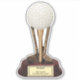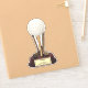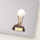 Vinheta-vinil de corte personalizado com uma imagem de uma bola de golfe numa vara de ouro, apoiada por três tacos de golfe de ouro, sobre uma base de madeira com texto opcional que diz: "Vencedor! Ace player e melhor Pai de sempre" em uma placa de ouro. Ver a coleção inteira do "Padre Day Sticker" nos CONVITES | Seção Stickers & Labels