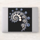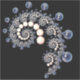 A marfim e as pérolas azuis espiralam dentro de uma espiral sobre um fundo preto.