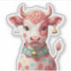 Um adorável adesivo de uma vaca de morango com manchas cor-de-rosa pastel e uma pequena cauda, vestindo um charmoso colar de sino. Este design doce e caprichoso é perfeito para adicionar um toque bonito e inspirado na fazenda aos notebooks, planejadores e muito mais.