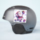 Um delicioso adesivo festivo apresenta Papais noeis alegres em uma roupa violeta vibrante, segurando alegremente presentes coloridos.